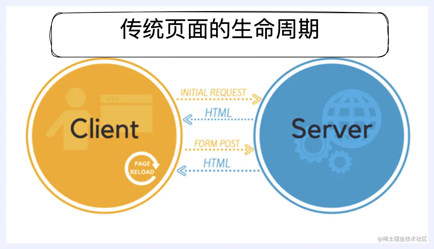 但是,按照传统网页开发模式生成页面的过程存在一个致命问题。每当页面中很小的数据变更(例如:提交一个form表单),服务端需要对整个页面进行重新渲染并通过网络将最新的页面传到客户端。