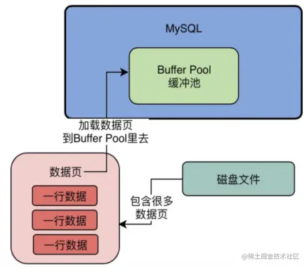 数据库中的Buffer Pool是个什么东西?其实他是一个非常关键的组件,数据库中的数据实际上最终都是要存放在磁盘文件上的,如下图所示。