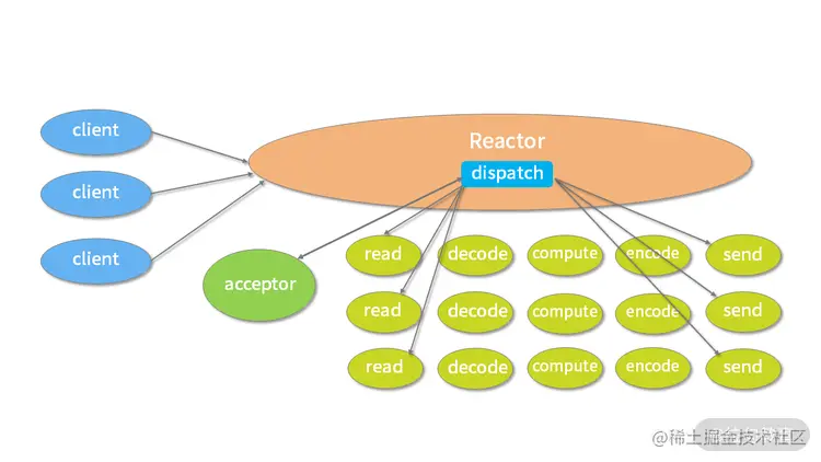 - Reactor 多线程模型将业务逻辑交给多个线程进行处理;