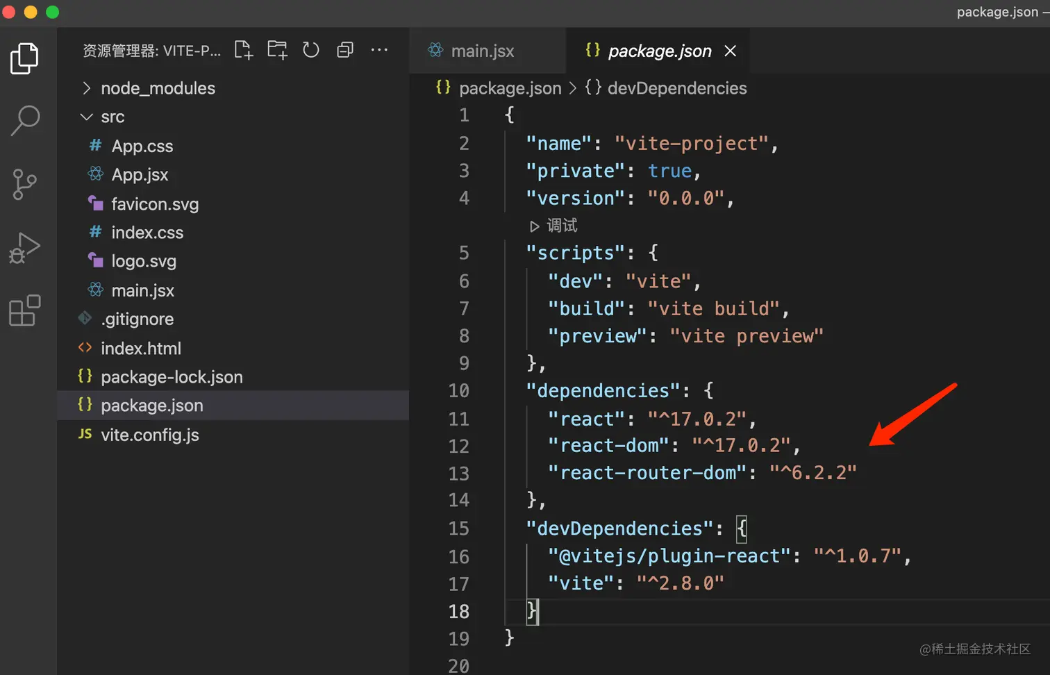 成功之后,娃们可以看到在main.jsx文件里引入了,那我们改造一下App.jsx文件吧,内容全部替换如下