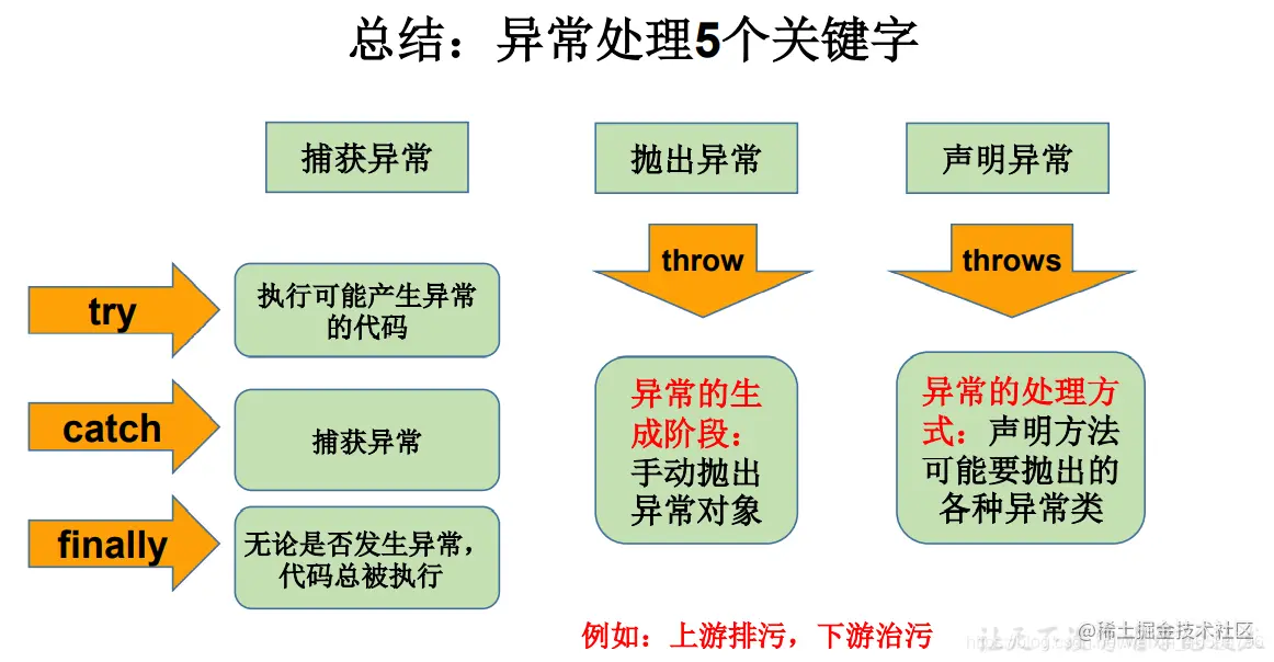 - 执行的方法a中,先后又调用了另外的几个方法,这几个方法是递进关系执行的。建议这几个方法使用throws方式进行处理。而执行的方法a可以考虑使用try-catch-finally方式进行处理