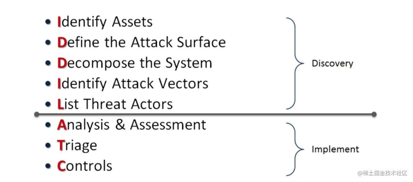 我们可以使用助记符来记住本文提出的方法论:“There are no idle (IDDIL) threats – they attack (ATC)”。这个方法论有两个工作阶段:IDDIL是发现阶段,ATC是实施阶段,相应行为如下:
