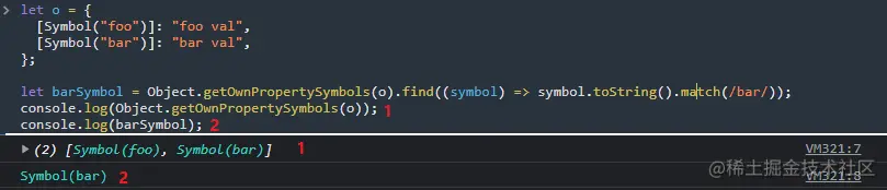 Object.getOwnPropertySymbols() 返回对象实例的符号属性数组,这两个方法的返回值彼此互斥;