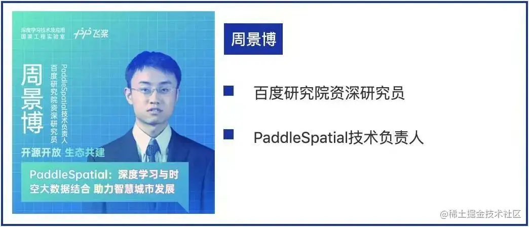 PaddleSpatial是基于百度飞桨深度学习框架开发的时空大数据计算工具和平台,融合了百度领先的区域分割、时间序列、城市迁移学习等时空数据处理能力。本次将由百度研究院资深研究员、PaddleSpatial技术负责人周景博,为大家分享PaddleSpatial如何实现深度学习与时空大数据的结合,以助力智慧城市发展。