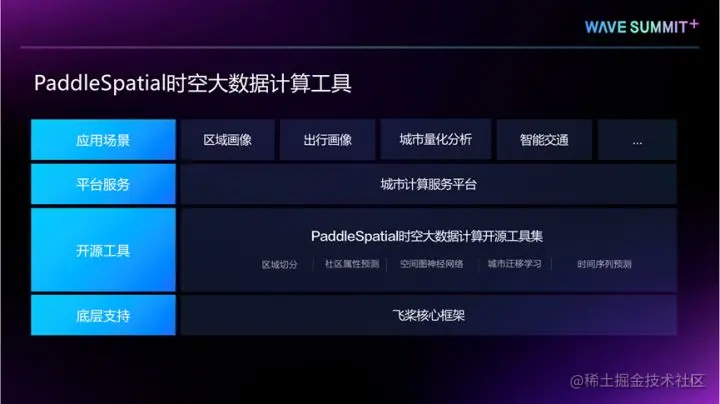 PaddleSpatial的研发目的正是为了充分利用百度的时空大数据能力和人工智能技术,构建基础算法的开源工具,来支撑上层城市的应用。