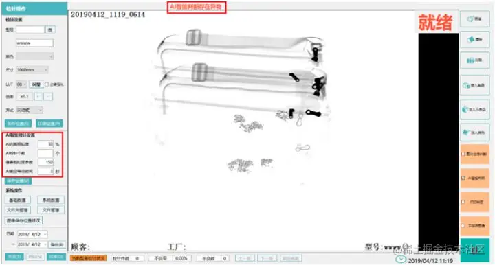 这样一来,待检的箱包通过 X 光检针机时拍摄的 X 光照片传输至系统后台,EasyDL 训练的模型对其进行智能识别,当相似度、检针个数等指标不符合设定标准时,就会自动发出警报。首次尝试验证就收获了不错的效果,爱包花饰便持续利用 EasyDL 进行了十几次迭代优化,让这一系统正式应用到了生产流水线上。