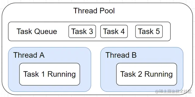 线程池模式代表重用现有线程和运行所有新指令,而不分配新线程。线程池控制运行线程的数量,并广泛用于生产中。