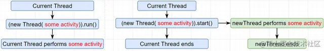 每个线程都提供了两个启动其活动的方法,但有一个显著的区别: