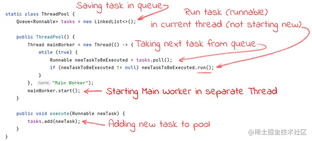 这里,我们不会研究现有的Java线程池,而是尝试创建我们自己的线程池。
