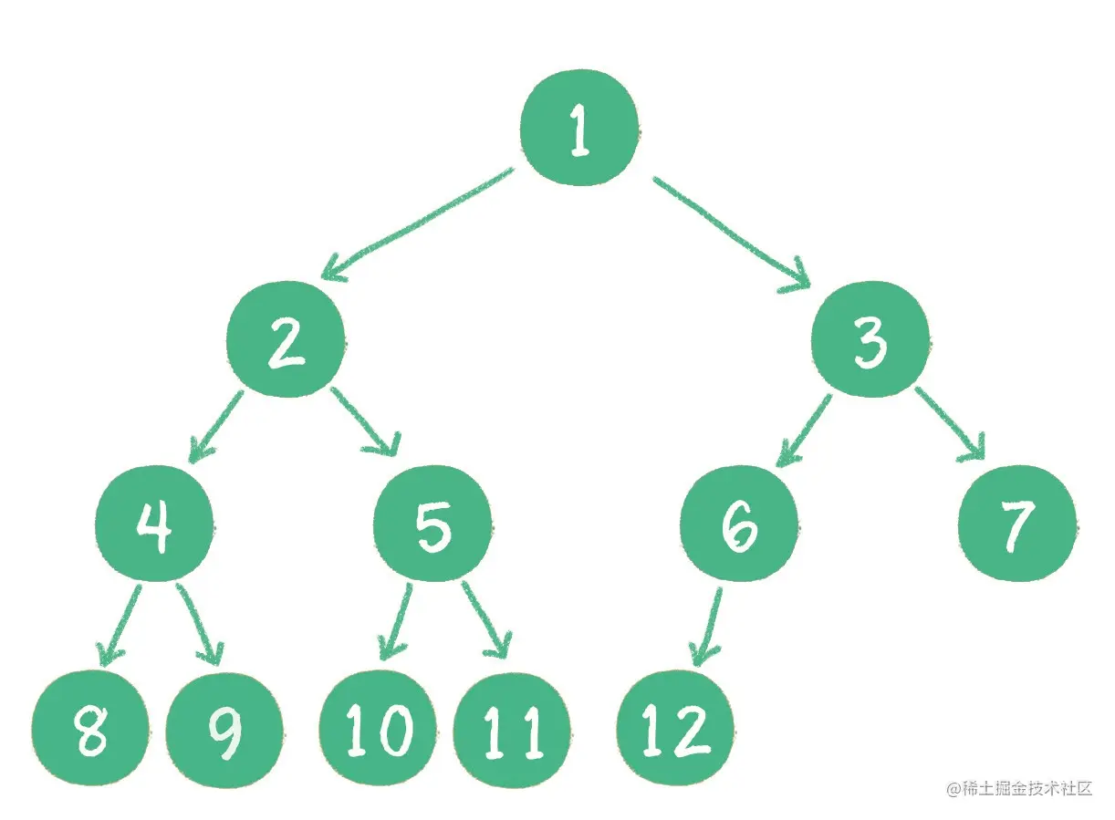 - 若果这个树所有节点和同样深度的满二叉树的编号从1到n 的节点位置相同;