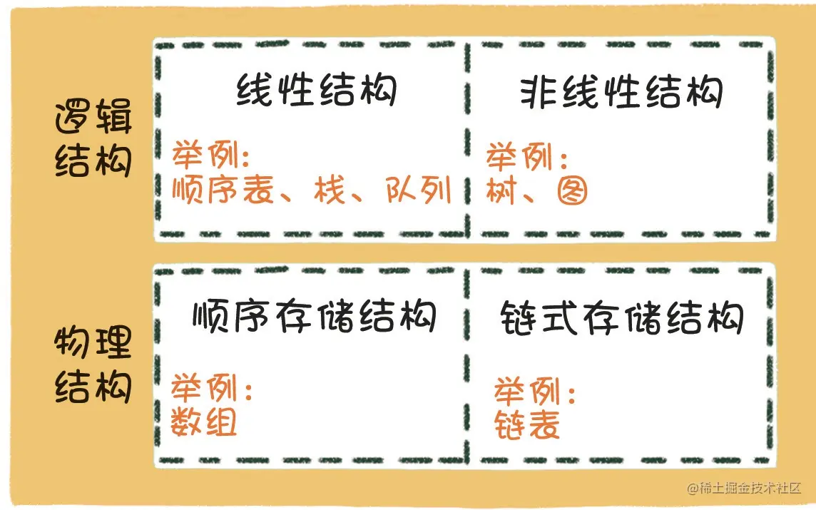 常用的数据结构有很多;大多是以数组和链表为基础进行构建;因此数组和链表也可以叫做数据结构的物理结构;