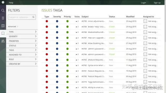Taiga 是面向敏捷开发人员的免费开源项目管理平台。它简单且可定制。它具有具有附加功能的高级版和企业版。它是用 Python、Django 和 AngularJS 编写的。
