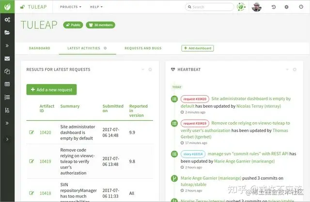 Tuleap 是一个免费的开源套件,用于改进软件项目的管理并与团队成员建立联系。它提供了用于管理项目、任务、变更、缺陷、文档以及版本控制、持续集成和社会协作的工具。它还具有具有更多功能的专业版和云版。