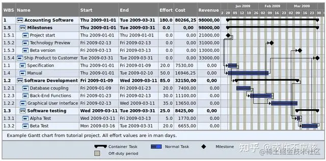 TaskJuggler 是一个免费的开源软件项目管理工具。它涵盖了从第一个想法到项目完成的所有项目管理任务。它在项目范围界定、资源分配、成本和收入计划、风险和沟通管理方面为您提供帮助。它提供了一个优化调度程序,可以根据项目大纲和您提供的约束条件计算您的项目时间线和资源分配。