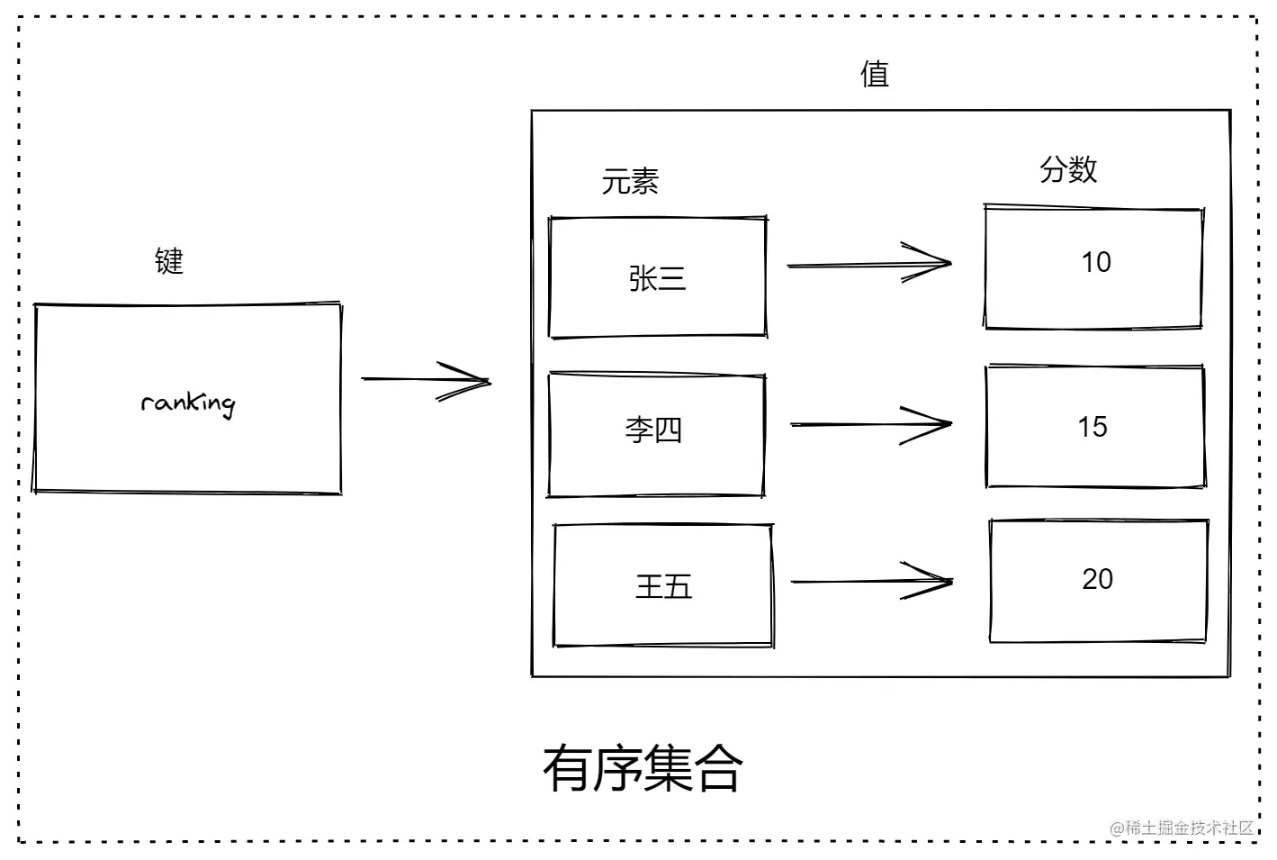 | ZSet | 与Sets类似,但每个字符串元素都与一个称为分数的浮点值相关联。元素总是按它们的分数排序,因此与 Sets 不同,可以检索一系列元素(例如,您可能会问:给我前10名或后10名) |