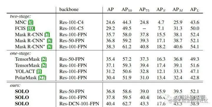 SOLO的精度已经超越了Mask R-CNN,相较思路类似的PolarMask也有较大的优势。