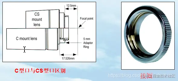①C与CS接口的区别在于镜头与摄像机接触面至镜头焦平面(摄像机 CCD光电感应器应处的位置)的距离不同,C型接口此距离为17.526mm,CS型接口此距离为12.5mm。