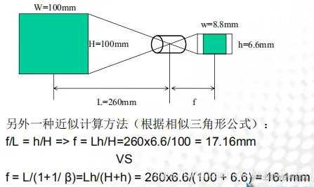 ** f = {工作距离/视野范围长边(或短边)}CCD长边(或短) *(需要记住的重要公式)