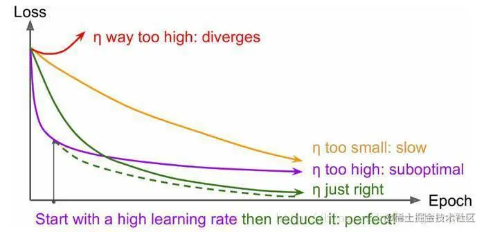 在训练过程中,一般根据训练轮数设置动态变化的学习率。