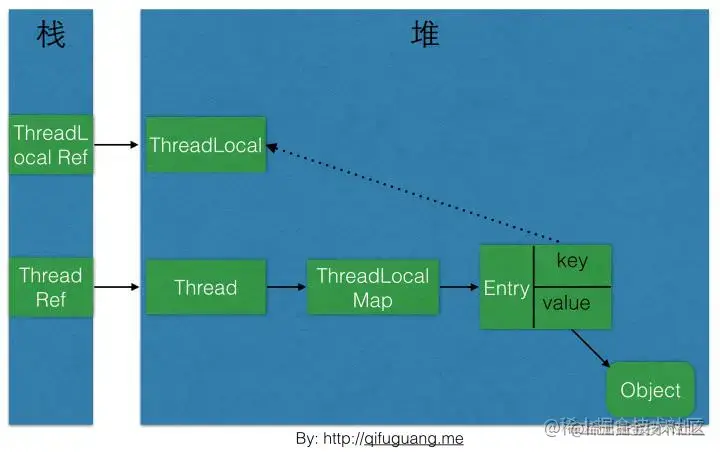 - 调用ThreadLocal的get()方法时,实际上就是往ThreadLocalMap获取值,key是ThreadLocal对象;