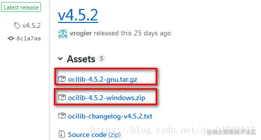 查看使用说明,查看版本说明并下载最新稳定版OCILIB4.5,可以根据自己的需要下载平台版本。如下图所示,其中Unix平台环境需要手动编译源码进行安装,在以下部分会进行详细的安装方法。