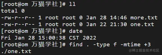 - 将当前目录及其子目录下3天以前的普通文件列出来。