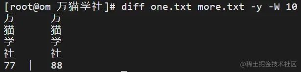 比较one.txt文件和more.txt文件,以并排格式输出。