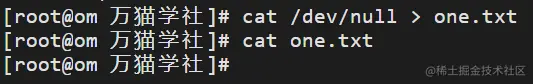 - 将one.txt文件内容清空,查看文件one.txt内容。