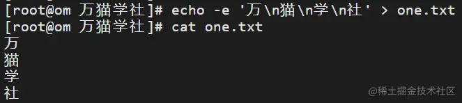 echo -e '万\n猫\n学\n社\n77' > one.txt