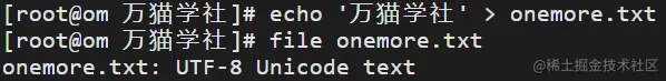 万猫学社每个字占一行写入one.txt文件中,再查看文件one.txt内容。