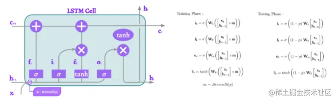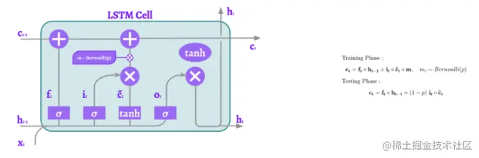 由Y. Gal和Z. Ghahramani介绍的RNN Dropout是在internal gates前的基于序列的Dropout的应用。这将导致LSTM在不同的点进行dropout,这个方法简单而有效。