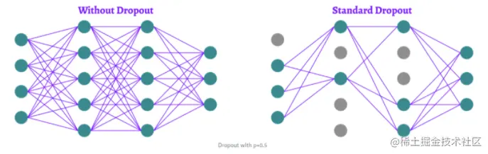 最常用的 dropout 方法是 Hinton 等人在 2012 年推出的Standard dropout。通常简单地称为“Dropout”,由于显而易见的原因,在本文中我们将称之为标准的Dropout。