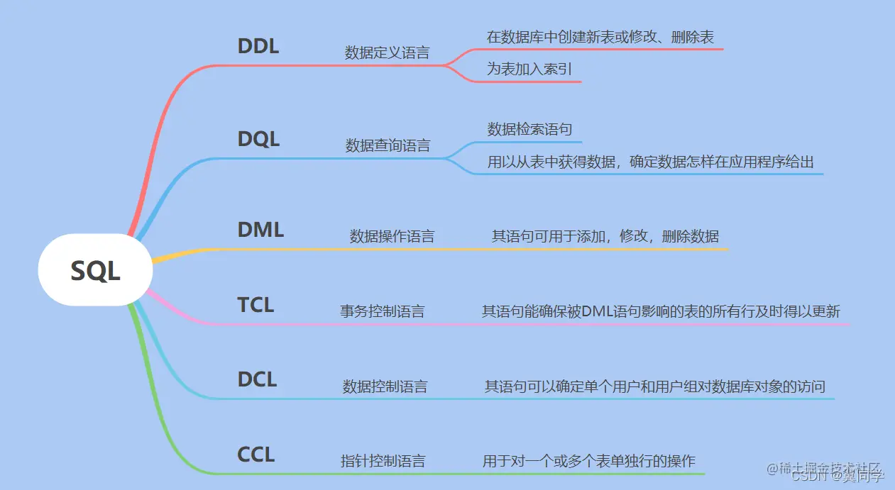 SQL是一种结构化查询语言(Structured Query Language),简称为SQL。也就是说SQL是一种数据库查询语言,用于存取数据以及查询,更新和管理关系数据库系统。SQL可以作为数据输入与管理的接口,且具有数据定义、数据操纵、和数据控制的功能。