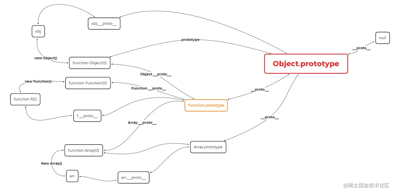 Array.prototype.__proto__ === Function.prototype//false 说明Array.prototype不是Function,就是说,Array.prototype是一个对象,而不是一个函数