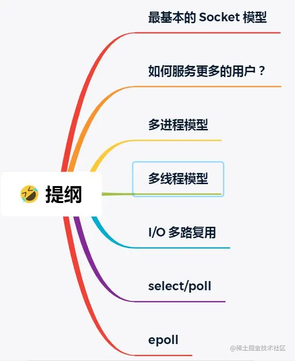 比较传统的方式是使用多进程/线程模型,每来一个客户端连接,就分配一个进程/线程,然后后续的读写都在对应的进程/线程,这种方式处理 100 个客户端没问题,但是当客户端增大到 10000 个时,10000 个进程/线程的调度、上下文切换以及它们占用的内存,都会成为瓶颈。