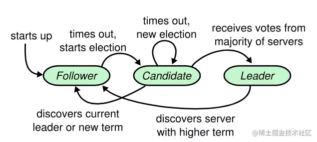 - 初始化的时候有一个领导者节点,负责发送日志到其他跟随者,并决定日志的顺序
