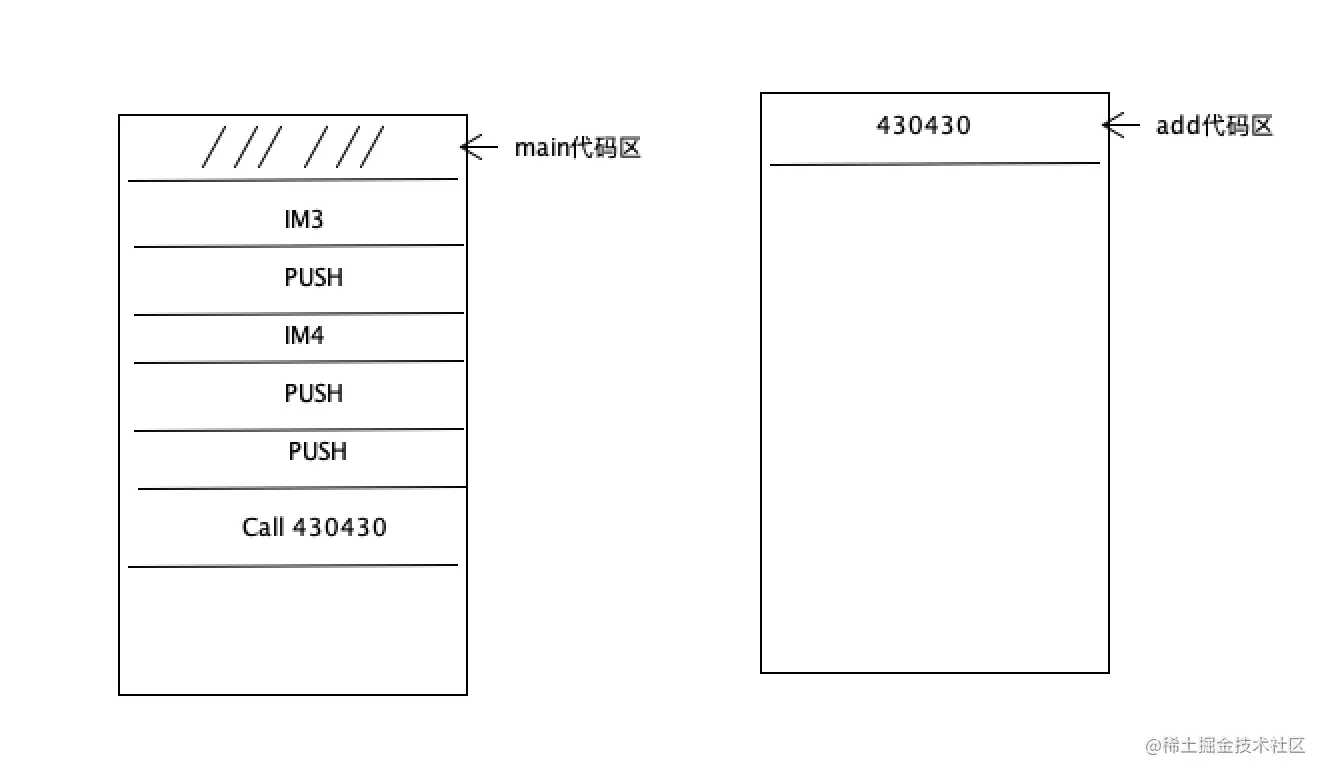 main代码区和add代码区是code区中连续的代码区 为了方便说明 分开画的
