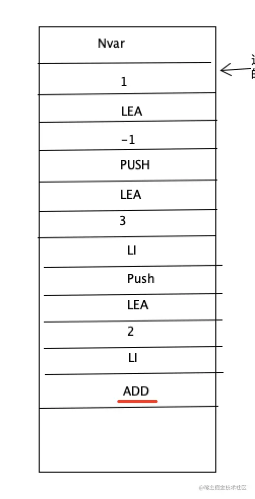 add指令是把ax里面的内容和stack peek(栈顶)的内容相加 然后存回ax
