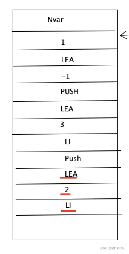 比如LEA-1 就是取bp在栈里面的位置 减1其实就是加1 因为栈是从大到小的 减1其实就是bp的下一个位置 这个位置可能就是这个函数的第一个局部变量 比如它是35 把这个位置的地址拿出来 取里面的值就是35