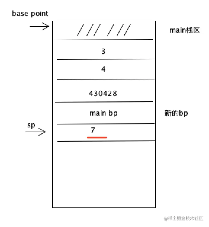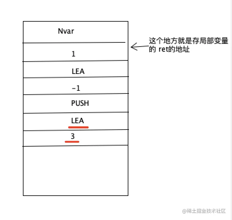 由于它是第一个局部变量 那么就是栈基减1的位置