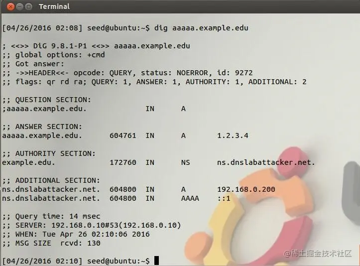 在User中Dig一下aaaaa.example.edu