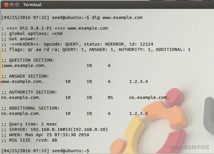 User中使用Dig命令得到的结果: