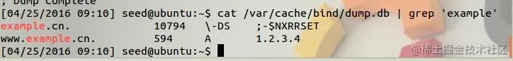 - 修改/etc/bind/named.conf.options文件,增加dump.db作为DNS缓存的文件,使用chmod提高dump.db的文件权限(777)