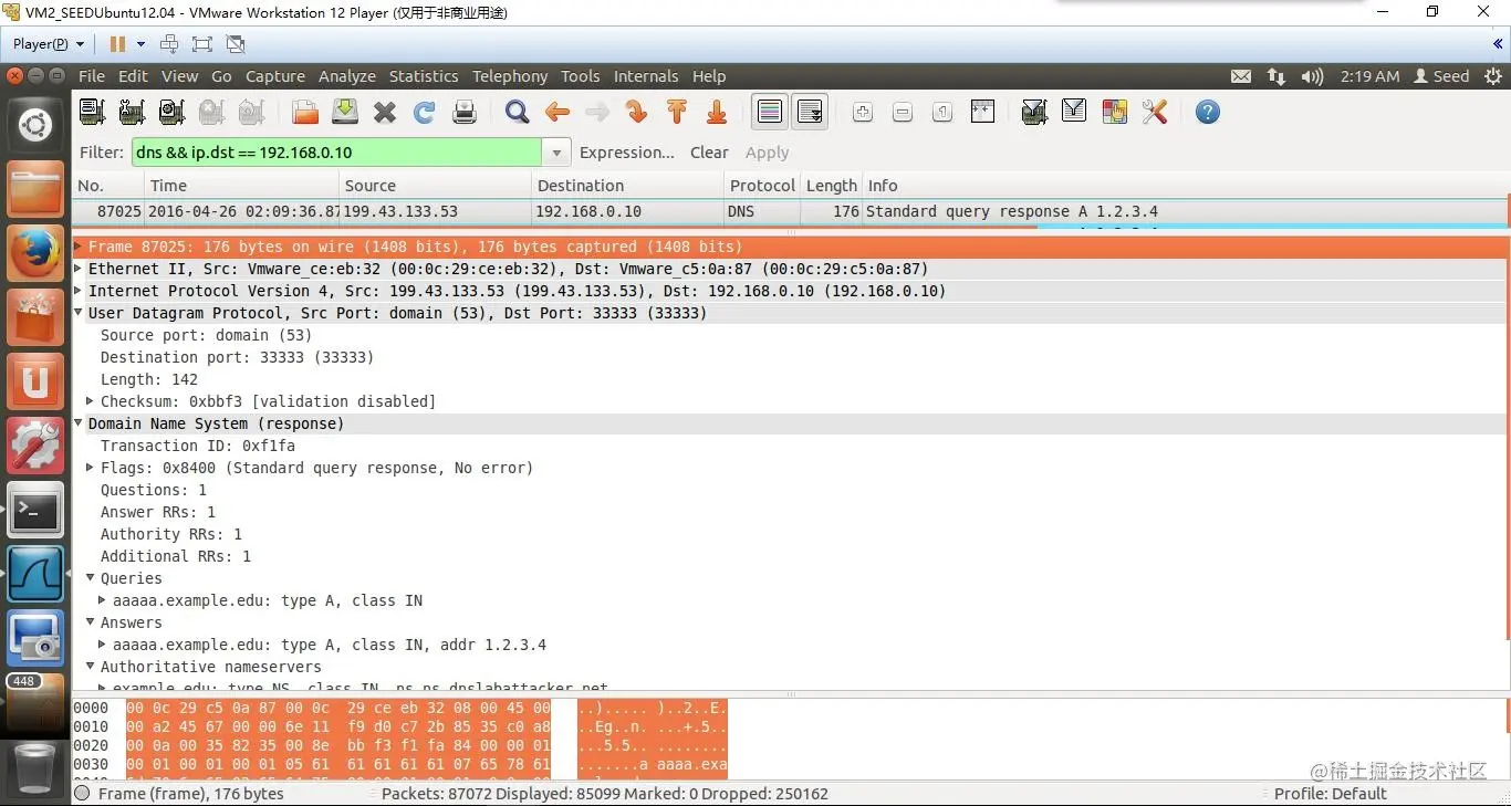 然后在DNS Server中用Wireshark查看收到的包: