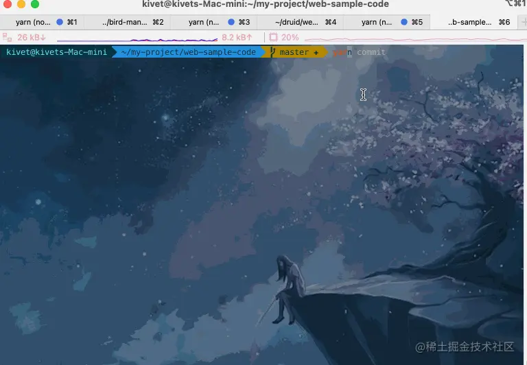 配置完成后,命令行终端输入命令 yarn commit 进行代码提交测试,如果能成功跑通下面流程,表示已经配置成功。