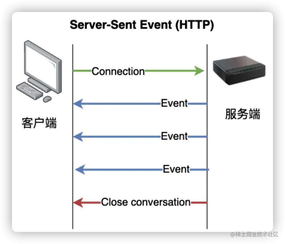 SSE 全称 Server-Sent Events,指的是网页自动获取来自服务器的更新,也就是自动化获取服务端推送至网页的数据,这是一个 H5 的属性,除了 IE,其他标准浏览器基本都兼容
