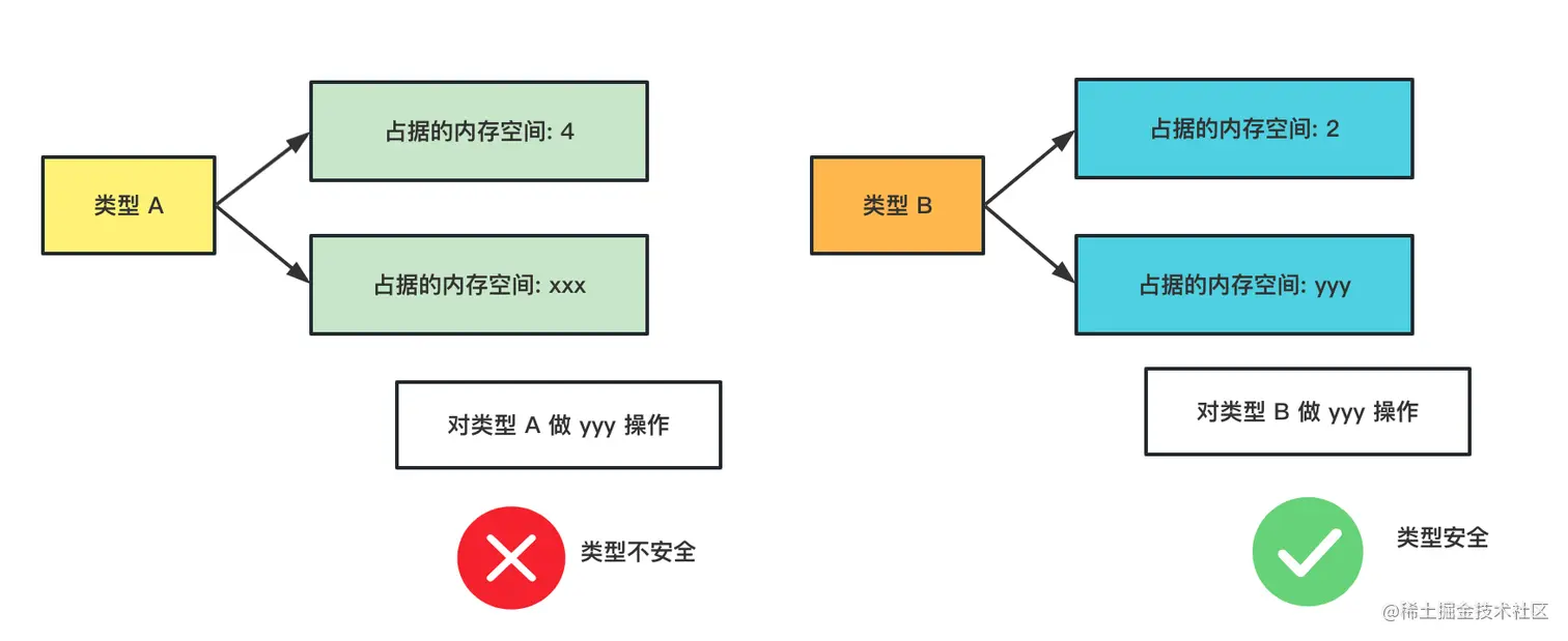 类型决定了变量的内存大小和可以对它进行的操作,保证对什么类型只做什么操作就叫做类型安全,而保证类型安全的方式就是类型检查。