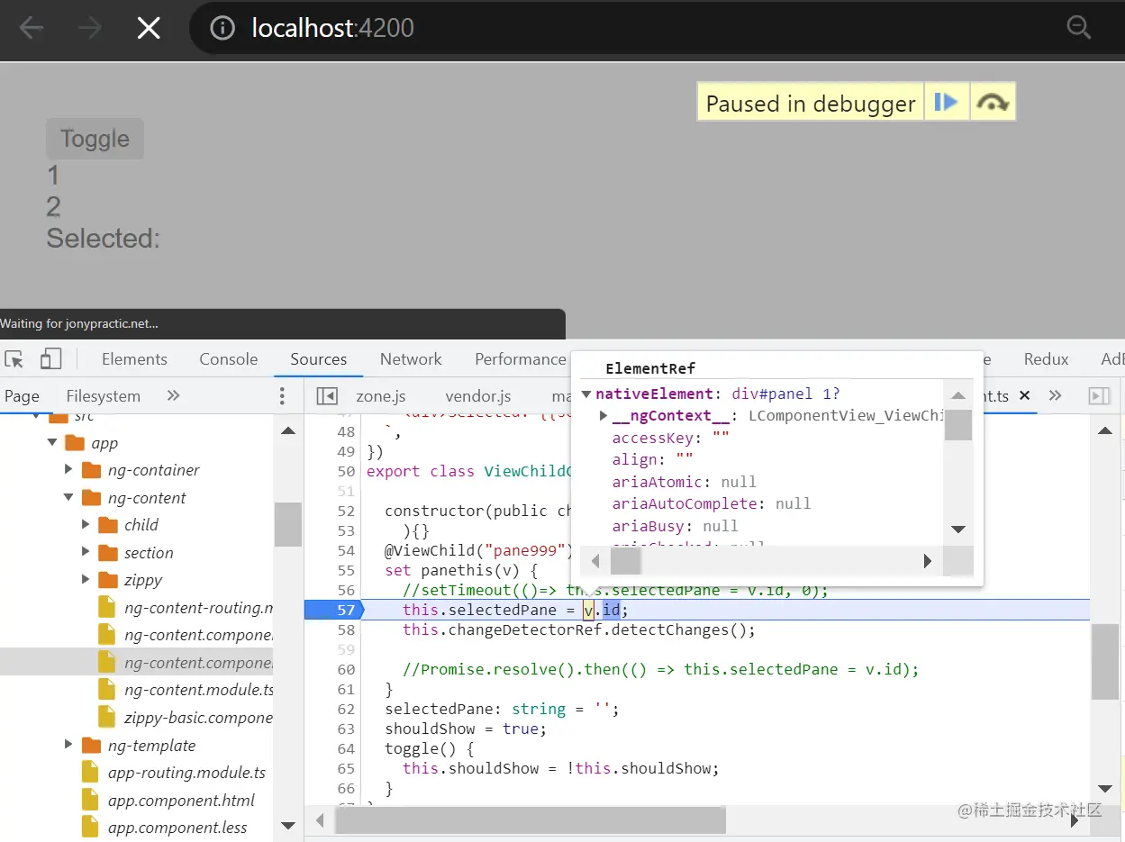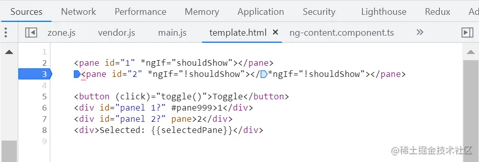 我有这样一个 Angular Component,模板文件如下: @Component({ selector: 'example-app', template: ` <pane id="1" *ngIf="shouldShow"> <pane id="2" *ngIf="!shouldShow">