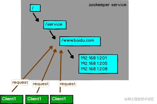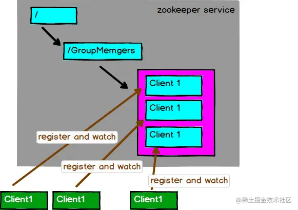 - 可将节点信息写入ZooKeeper上的一个ZNode。.