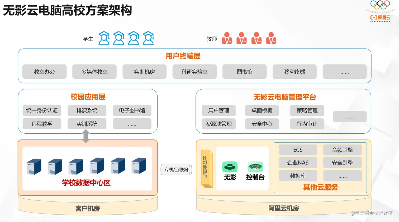 针对以上诉求,无影团队针对高校教育场景进行了解决方案架构: